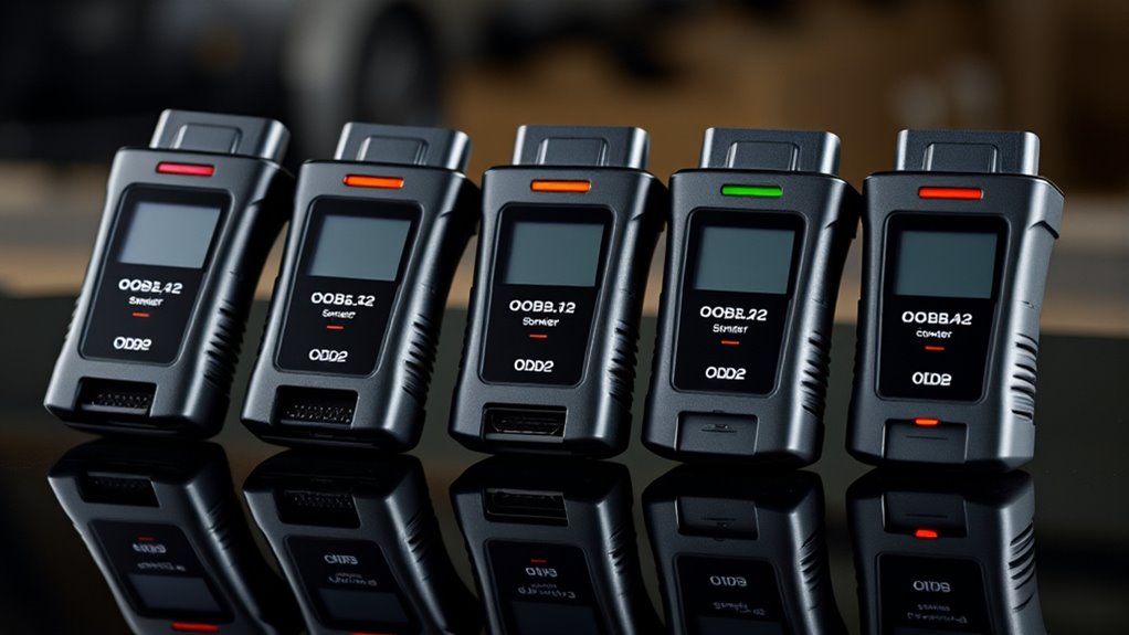 Choosing an OBD2 scanner that supports the right diagnostic protocols is vital to guaranteeing compatibility with European vehicles. Many European cars use protocols like ISO9141, KWP2000, and CAN, so your scanner must support these to read and clear codes effectively. Support for ISO14230 (Keyword Protocol 2000) is especially important for older BMWs and Mercedes-Benz models, which rely on this protocol. Since most European cars built after 2008 use the CAN protocol, having this support is essential for accessing the vehicle’s advanced systems. Additionally, compatibility with manufacturer-specific protocols ensures you can diagnose unique European features. Confirming your scanner supports all relevant protocols guarantees thorough diagnostics, enabling you to accurately identify issues across different European car brands and models.