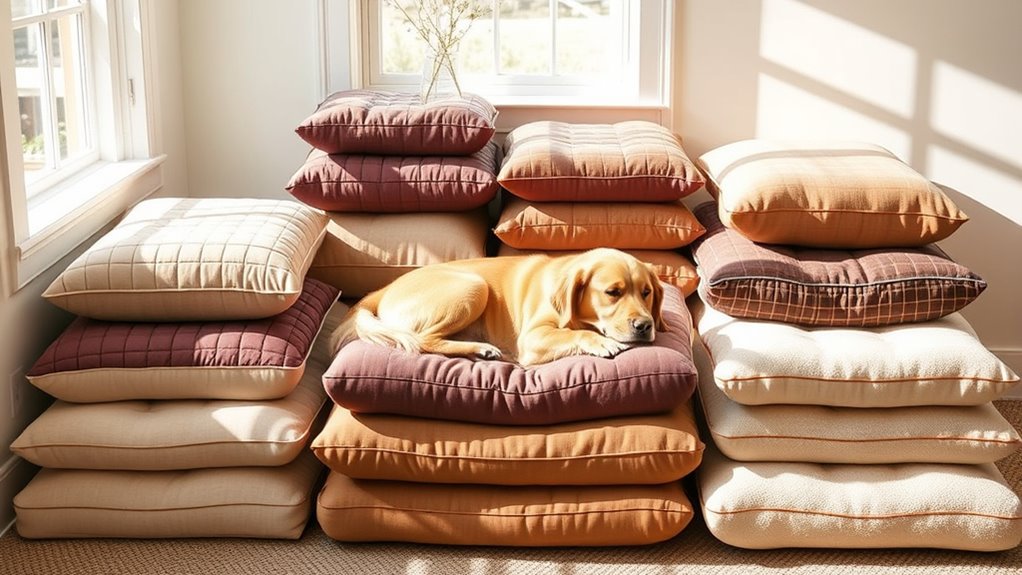I love pillows with removable, waterproof covers, as they make cleaning a breeze without damaging the underlying padding. Plus, materials like TPU or coated fabrics ensure the pillow stays dry and supportive, even after multiple washes. Incorporating waterproof features enhances my pet’s comfort, providing a clean, dry resting surface that discourages bacteria growth and keeps them healthy.