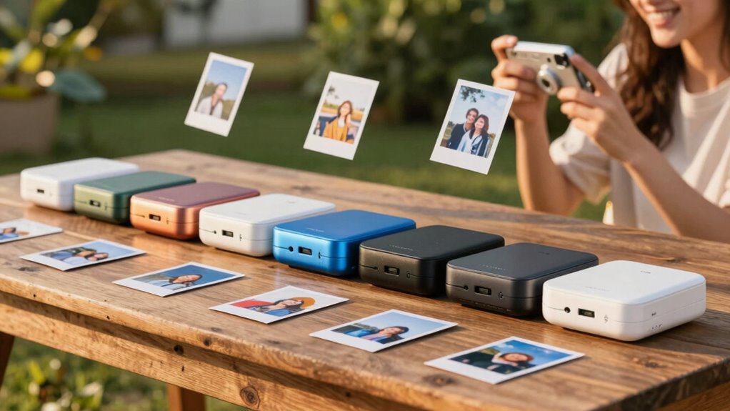 If you’re looking for the 15 best portable photo printers for on-the-go printing in 2026, I’ve got you covered. From compact devices like the Canon Ivy 2 Mini and Nelko PP01 to versatile options like the KODAK Dock ERA Plus and Selphy CP1500, there’s something for every need. These models feature wireless connectivity, durable prints, and user-friendly designs. Keep exploring, and you’ll discover detailed insights to help you choose the perfect portable printer for your adventures.