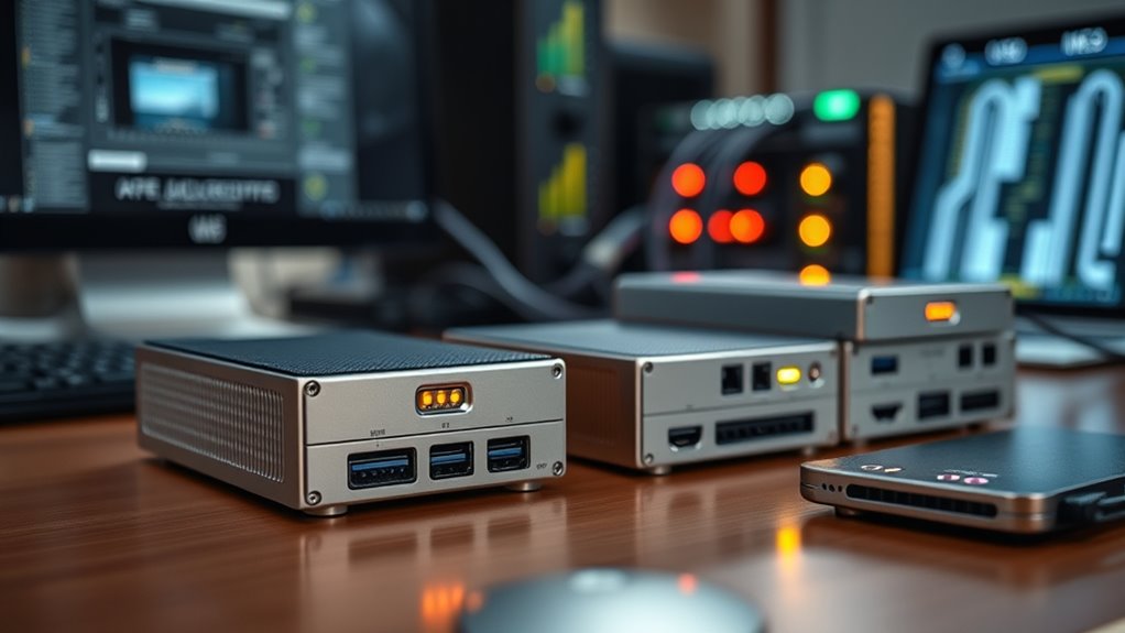 When choosing transfer aids, I look for key safety features like anti-slip surfaces, sturdy hand grips, and stable bases to prevent accidents. It’s important they have secure locking mechanisms to keep the device in place during use. I also check for weight capacity labels, ensuring they support my needs safely. These features give me confidence that I can move data smoothly while minimizing risks of slips or falls.
