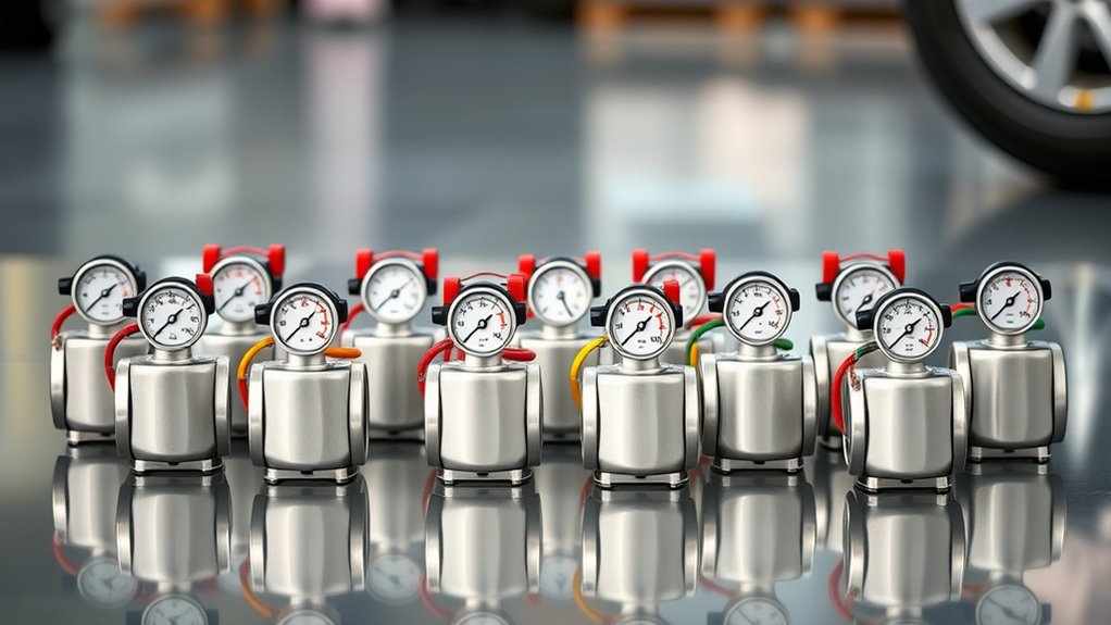 If you’re looking for the 15 best portable tire inflators with gauges in 2025, I’ve got you covered. These models combine quick inflation speeds, accurate digital gauges, and user-friendly features like auto shut-off and LED lights. Ideal for cars, bikes, and inflatables, they’re designed for convenience and precision. Whether cordless or plug-in, these inflators deliver reliable performance on the go. Keep going to discover detailed options that match your needs perfectly.