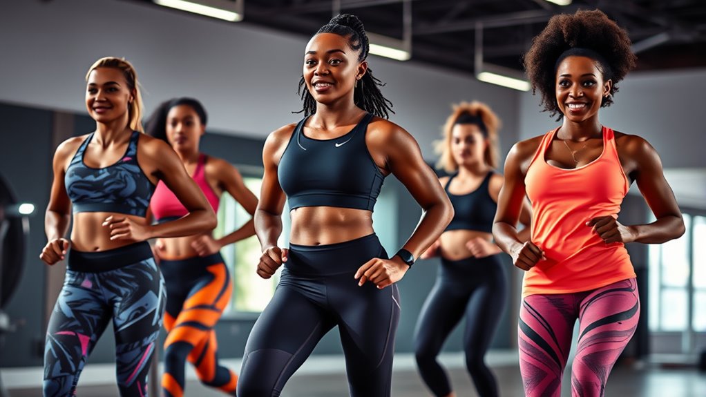 When searching for the 10 best premium workout apparel that blend style with performance, I look for pieces made from breathable, moisture-wicking fabrics like spandex blends and high-quality polyester. They should offer a perfect fit, support, and durability, with features like high waistbands, seamless designs, and versatile styles suitable for various activities. If you’re curious about top options that boost confidence and comfort, keep exploring—there’s more to discover that fits your needs.