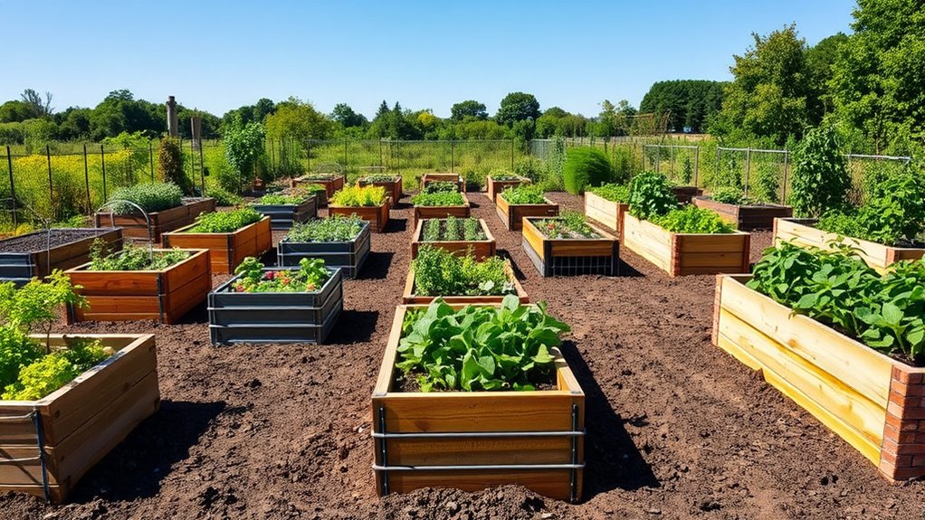 Choosing the right raised garden beds starts with understanding your budget, as options range from affordable, basic models with simple features to premium designs with advanced options. I recommend considering not just the initial cost but also the price of additional accessories like soil, lining, or drainage systems, which can add up. When comparing materials such as wood, metal, or composite, keep in mind their durability and how that impacts long-term costs. Investing in a higher-quality bed might be pricier upfront, but it often offers better longevity, performance, and fewer repairs, saving you money over time. Be sure to evaluate warranty coverage and overall value, so your choice balances cost with quality, ensuring your garden thrives without breaking the bank.