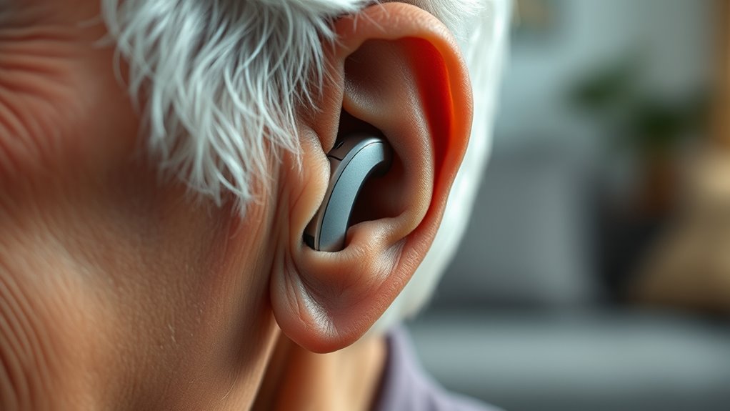 When selecting rechargeable hearing aids, ease of operation plays a key role in ensuring users can manage their devices confidently. I recommend looking for models with intuitive controls, like single-button operation or touch sensors, which simplify adjustments. Large, accessible buttons or switches are also essential, especially for those with limited dexterity. Automatic features, such as auto on/off and smart memory functions, reduce manual handling and make daily use more convenient. Clear, step-by-step instructions or visual indicators further help users operate their devices without frustration. Additionally, quick charging times and long battery life minimize frequent handling, making maintenance easier and less disruptive. Overall, these features make managing hearing aids straightforward, boosting confidence and comfort for seniors.