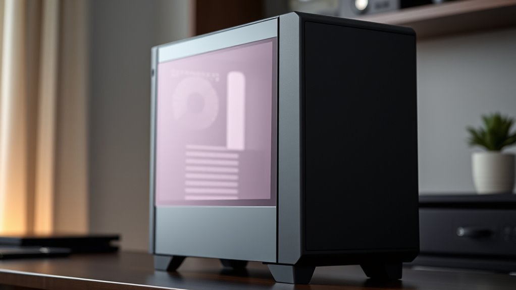 Silent cases can be suitable for overclocked components, but you need to choose carefully. I’ve found that high-quality sound damping and good airflow are key to balancing noise reduction and cooling. While some silent cases handle overclocked parts well, it’s vital to guarantee they have enough ventilation and support for robust cooling solutions. Otherwise, your components might overheat, negating the benefits of a quieter case.
