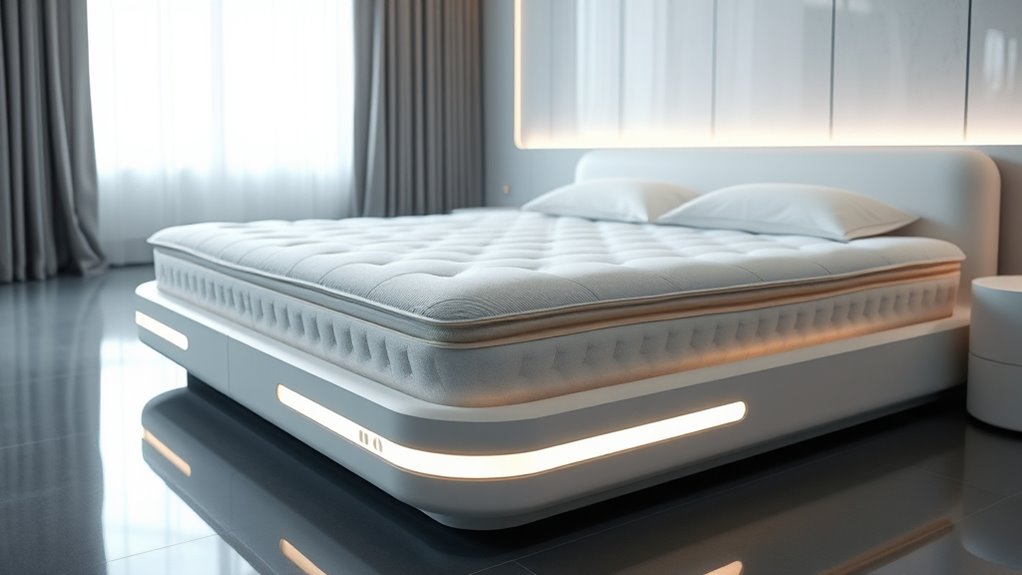 If you’re looking for the best smart beds and mattresses for a perfect night’s sleep in 2025, I’ve got you covered. These beds offer personalized comfort with adjustable positions, cooling gel memory foam, and targeted support zones to reduce tossing and overheating. Many models come with massage features, smart controls, and sturdy support for all weights. Keep exploring to find tools that elevate your sleep experience and tailor it just for you.
