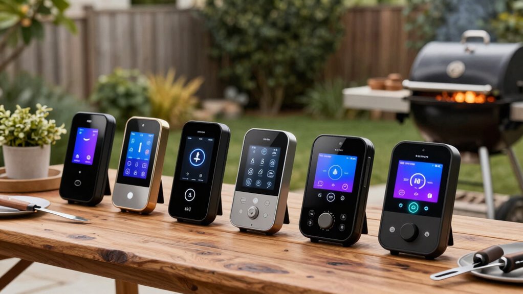 If you want to elevate your BBQ experience, I’ve found that the best smart grill controllers for 2026 offer precise temperature control, remote monitoring, and easy compatibility with various grill types. From WiFi digital controllers to wireless thermometers and retrofit options, these devices improve safety, efficiency, and convenience. They allow me to cook perfectly every time with minimal fuss. If you keep going, I’ll share the top options that can transform your grilling game even further.