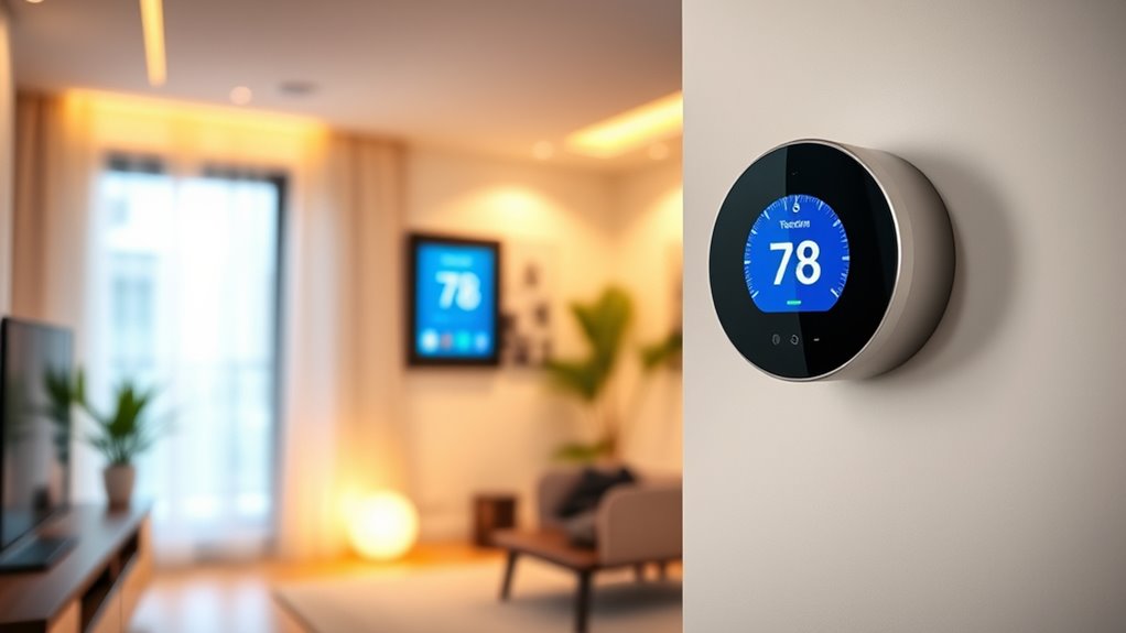 Choosing the right smart thermostat is like finding the perfect key to unfasten your home’s comfort and savings. I once installed a thermostat that learned my routines, and suddenly, my energy bills dropped by 20%. It’s more than just tech—it’s about creating a smarter, more efficient space. So, take your time, consider your needs, and let the right thermostat turn your house into a cozy, cost-saving haven.