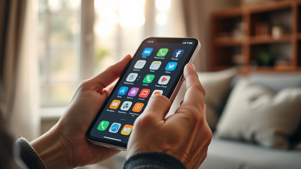 Hearing aid compatibility is essential for seniors who rely on hearing aids, as it guarantees they can enjoy clear, audible sound without interference or distortion. Phones with HAC ratings, like M3 or T3, are tested to reduce electromagnetic interference, ensuring better speech clarity. Higher ratings mean greater compatibility, making conversations easier. Additionally, smartphones supporting Bluetooth allow direct wireless streaming to hearing aids, improving sound quality during calls and media playback. Choosing a device with volume boost features and adjustable sound settings can further enhance audio clarity, especially for those with hearing impairments. These features help seniors stay connected and engaged, providing a more accessible and comfortable experience when using their smartphones. Prioritizing hearing aid compatibility is a crucial step in selecting an elderly-friendly device.