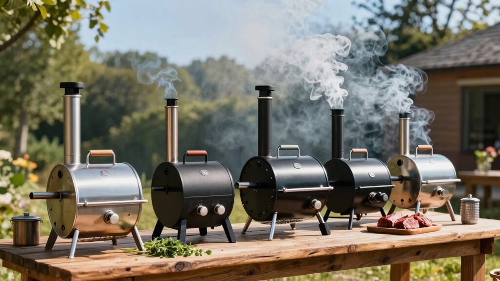 - Choose versatile fuel options like electric or pellet smokers for simplicity, consistency, and minimal manual tending.