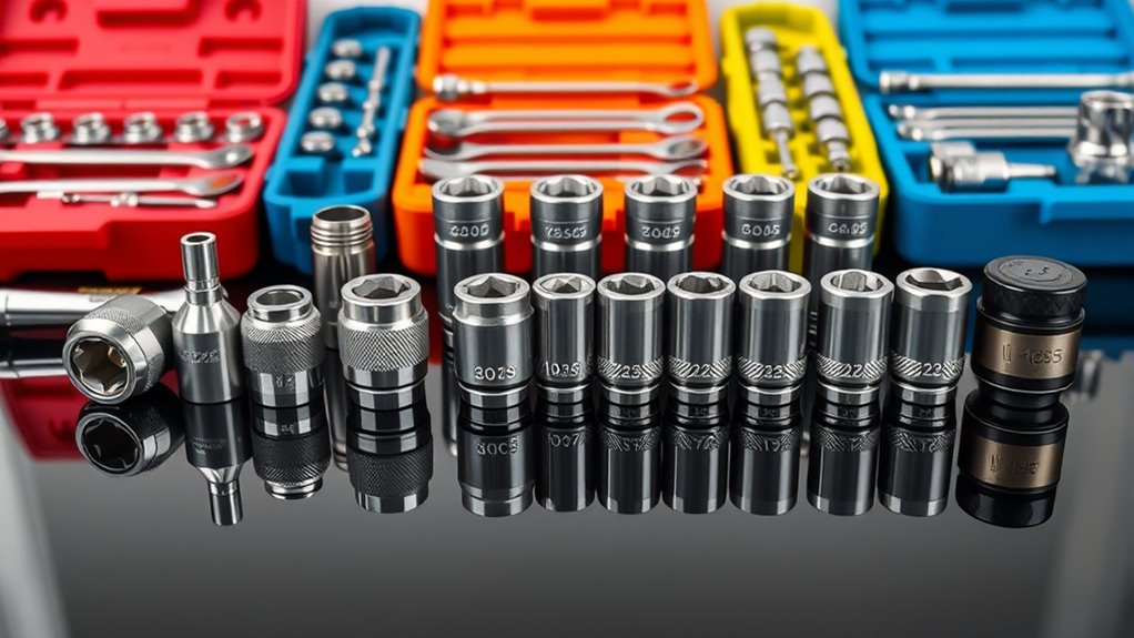 Opting for socket wrench sets made from high-quality materials guarantees they can withstand demanding tasks and last longer. I look for sets crafted from chrome vanadium or chrome molybdenum steel, known for their strength and durability. Double or triple chrome plating not only adds a shiny finish but also protects against corrosion, especially in harsh environments. The thickness and hardness of the socket walls are essential—they prevent cracking or deformation under high torque. For heavy-duty jobs, impact-rated sockets made from specially hardened steel are a smart choice—they’re built to endure intense stress without shattering. When materials are durable and manufacturing is precise, tools maintain a consistent fit, resist wear, and deliver reliable performance over time, making them a worthwhile investment.