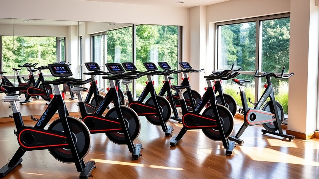 Price and value are crucial factors to contemplate because a higher cost doesn’t always guarantee better performance, but investing wisely can save you money in the long run. Spin bikes range from under $300 to over $1,000, with prices reflecting features, build quality, and technology. Higher-priced models often include advanced connectivity, adjustable resistance, and durable construction, offering better long-term value. Budget options may lack app compatibility or multiple resistance levels but still provide effective cardio workouts. When choosing, consider how well the bike matches your fitness goals, build quality, and features. Investing a bit more in a bike with extra features and better durability can be more economical over time, thanks to reduced maintenance and increased workout variety. Balancing cost and quality is key to a satisfying purchase.