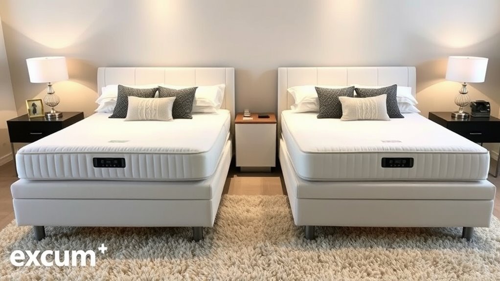If you’re serious about turning your bedroom into a sanctuary of comfort, these split king adjustable beds with massage are game-changers. They’ll elevate your relaxation to levels so heavenly, it’s like sleeping on a cloud crafted by angels. With the right features, you can finally customize your sleep experience to perfection. Trust me, once you try one, you’ll wonder how you ever slept without this ultimate blend of luxury and technology—your sleep will never be the same!