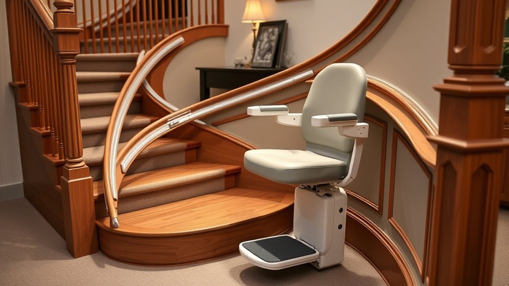 When selecting a stairlift for seniors, ease of installation is a key factor that can save time and reduce stress. I recommend choosing models designed for self-installation, which include detailed instructions and all necessary components like track sections and mounting hardware. Make sure the installation process matches your staircase type—whether straight or curved—and requires minimal modifications. Look for stairlifts with clear, step-by-step guides or videos to simplify the DIY process. Safety features such as sensors, secure seat swivels, and automatic brakes not only enhance safety but also make installation easier. Additionally, opt for models with adjustable and modular track systems, allowing for straightforward setup and future adjustments without hassle. This approach ensures a smooth, safe, and efficient installation experience.