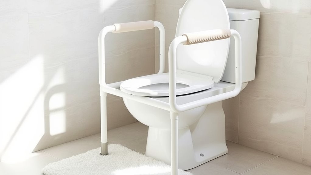 If you’re exploring the 14 best toilet safety frames for seniors, I can help you find options that prioritize safety, stability, and ease of use. These frames are adjustable, foldable, and made from durable materials like aluminum or alloy, supporting various weights and toilet types. They come with features like anti-slip grips, suction cups, and convenient storage. Keep going to discover detailed insights to find the perfect fit for your loved ones’ needs.