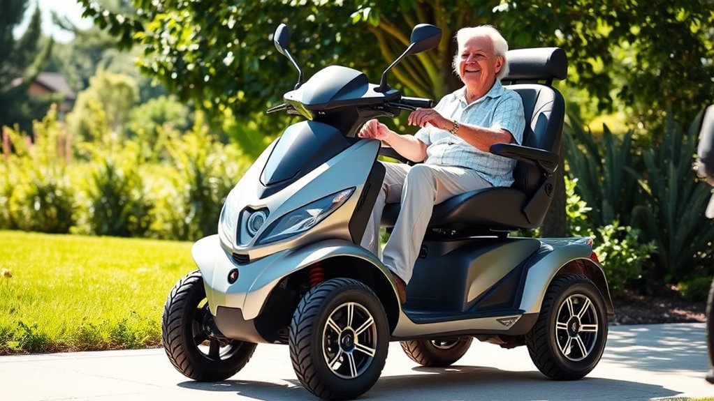 Prioritizing comfort and adjustability guarantees seniors can enjoy a smooth and personalized riding experience. Adjustable seat height and rotating features let users find the perfect position, reducing fatigue and discomfort. Flip-up armrests make getting on and off easier, minimizing strain during transfers. Padded, ergonomic seats with memory foam cushioning provide prolonged sitting comfort, essential for longer outings. Tiller angle and handlebar height adjustments help users maintain a natural, comfortable grip, preventing strain on the arms and shoulders. Features like adjustable footrests and customizable controls accommodate different body sizes and mobility needs, ensuring everyone can tailor the scooter to their preferences. These adjustable elements make a significant difference, enhancing overall comfort and making daily use more enjoyable and less tiring.