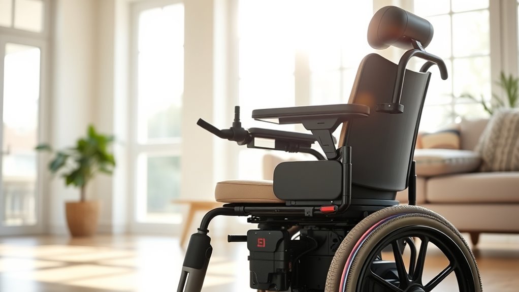 Choosing a power wheelchair that offers ideal comfort and ergonomics is essential for ensuring a pleasant and supportive experience for elderly users. Ergonomic features like adjustable backrests and armrests allow for personalized support, helping prevent discomfort during extended use. Memory foam seats and breathable cushions can substantially reduce pressure sores and improve sitting comfort. Proper lumbar support and suitable seat positioning are key to alleviating spinal strain and encouraging good posture. Easy-to-reach controls and intuitive interfaces minimize fatigue and make operation effortless, especially for those with limited dexterity. Additionally, customizable features such as adjustable footrests and armrest heights ensure a perfect fit for diverse body types, promoting better comfort and reducing strain. Overall, prioritizing ergonomic design enhances safety and everyday usability.
