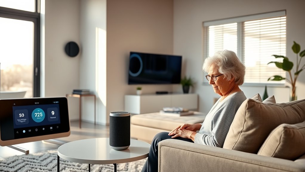 Have you ever considered how smart home devices can enhance safety for seniors? These devices can include motion detectors, door/window sensors, and alerts for unusual activity, helping to prevent accidents and intrusions. Video doorbells and surveillance cameras let families monitor homes remotely, providing peace of mind. Automated lighting systems reduce fall risks by illuminating pathways at night, while voice-activated devices allow seniors to summon help or control systems without physical effort. Emergency features like instant call buttons and fall detection are essential for quick assistance during emergencies. When choosing smart devices, prioritize those with reliable security features and easy-to-use controls to ensure safety without adding complexity. A well-rounded setup creates a safer, more confident environment for seniors to live independently.