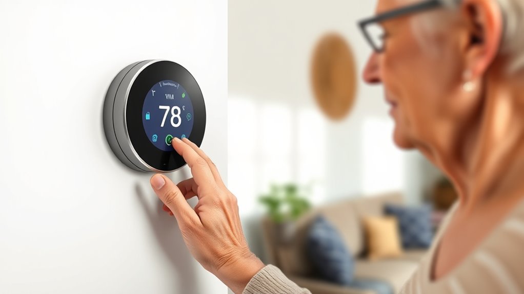 Using a smart thermostat is like having a personal assistant—easy to control without a smartphone. Many models feature physical buttons, touchscreens, or even remote controls, so seniors can adjust the temperature effortlessly. I’ve found that these options make it simple for anyone who isn’t tech-savvy to stay comfortable without needing to rely solely on a smartphone app, ensuring peace of mind and convenience.