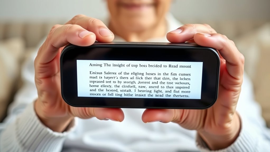 A larger display screen, typically 7 inches or more, substantially reduces eye strain and makes reading easier for seniors with low vision. A bigger screen allows for more comfortable viewing without squinting or leaning in too close. High-resolution screens with 800×480 pixels or greater deliver sharper images and more detailed text, which is essential for clarity. Anti-glare or matte coatings minimize reflections, reducing eye fatigue during long reading sessions. Adjustable brightness and multiple viewing modes enable customization to suit different lighting conditions and visual preferences. Portable video magnifiers with foldable screens and adjustable viewing angles offer added flexibility, allowing users to position the device comfortably for various tasks. Overall, display quality and size are key factors in ensuring comfortable, effective use for visually impaired seniors.