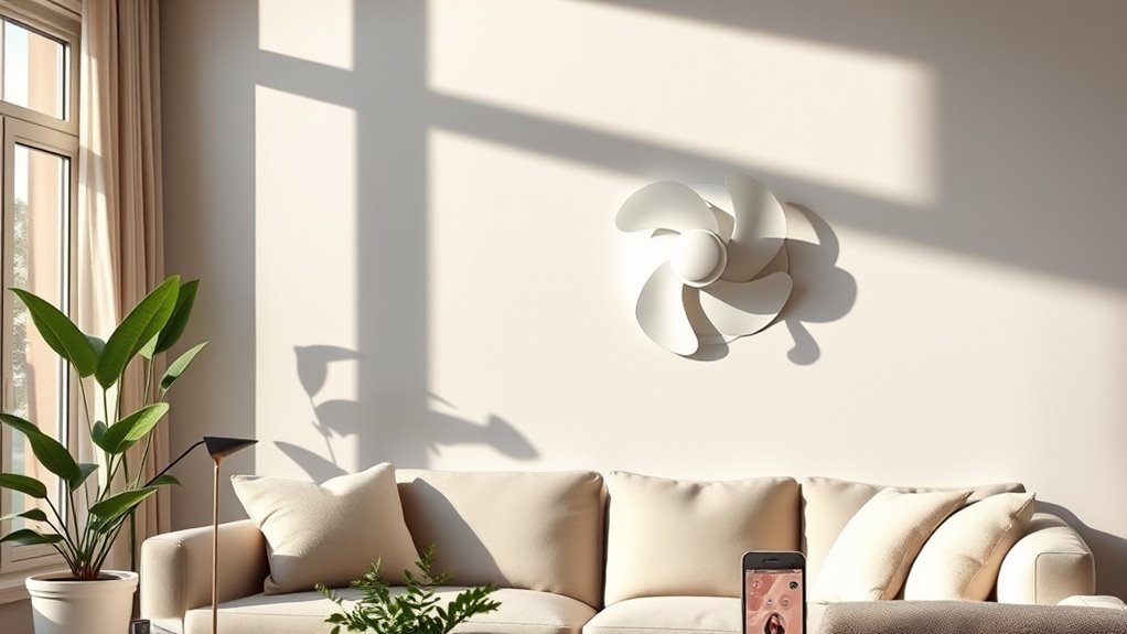 You’re wondering if these fans can be controlled without an internet connection. I’ve found that many voice-controlled fans can still be operated via Bluetooth or local Wi-Fi when your internet is down, depending on the model. Some fans have physical controls or app-based options that don’t require internet, so you’re not completely out of luck. It’s always best to check each fan’s specific features to guarantee reliable control without internet access.