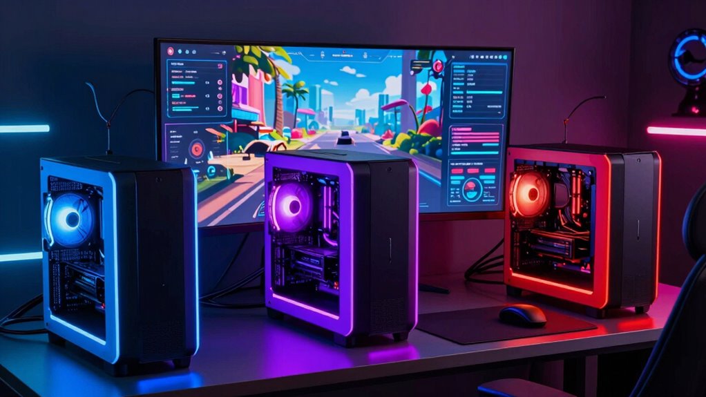 I’ve found the top VR capture and streaming PCs for 2026 that can take your game to the next level. These systems pack high-end CPUs like Intel i7 or AMD Ryzen 7, powerful GPUs with 8GB+ VRAM, and fast SSD storage for seamless performance. They support high refresh rates and multiple ports for VR headsets, capture cards, and peripherals. If you keep exploring, you’ll discover which options can boost your VR streaming game even further.