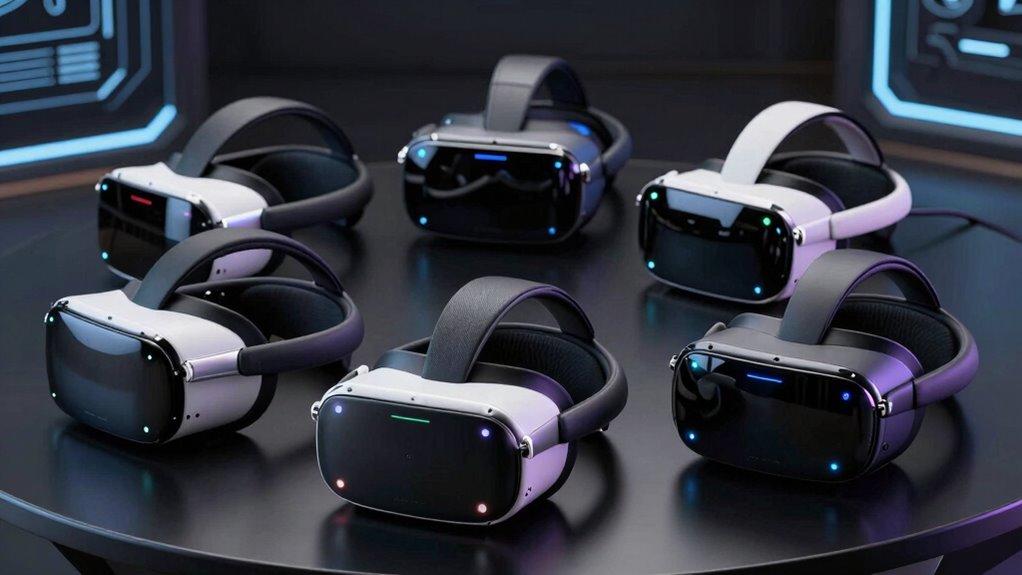 If you’re looking for the best high-resolution VR headsets in 2026, I recommend the HTC Vive XR Elite Deluxe, Meta Quest 3, HTC Vive Focus Vision XR, Pimax Crystal, and PlayStation VR2. These headsets feature stunning resolutions like 3840×3840 per eye, OLED, MiniLED, QLED displays, and FOVs over 110°, providing crisp visuals and immersive experiences. Keep exploring to discover which options suit your needs and how to get the most out of VR.