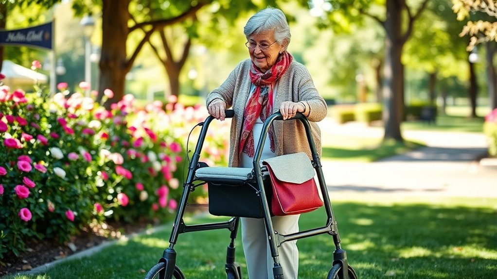If you’re looking for the best walker accessories for seniors in 2025, there are many options to improve safety and convenience. From durable bags with multiple pockets like the Rhino Valley and RMS tote, to practical accessories like glide supports and cup holders, these additions can make mobility easier and safer. Consider factors like materials, compatibility, and user features. Keep going to discover detailed insights on choosing the perfect accessories to enhance independence.