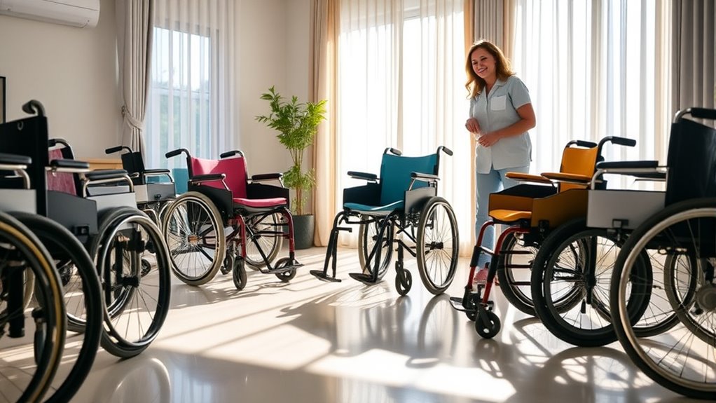 Maneuverability and control are crucial factors in selecting a wheelchair for ALS patients, as they directly impact the user’s independence and safety. I’ve found that adequate maneuverability allows patients to navigate tight spaces and crowded environments with less effort and greater safety. Look for control features like responsive brakes and easy-to-use steering mechanisms that help maintain stability during movement. Lightweight frames and compact folding designs not only enhance control but also make transportation simpler for caregivers. Additionally, precise wheel and caster configurations ensure smooth rides over various terrains. Adjustable and responsive steering options let users customize control based on their strength and coordination levels, making it easier to enjoy mobility with confidence.