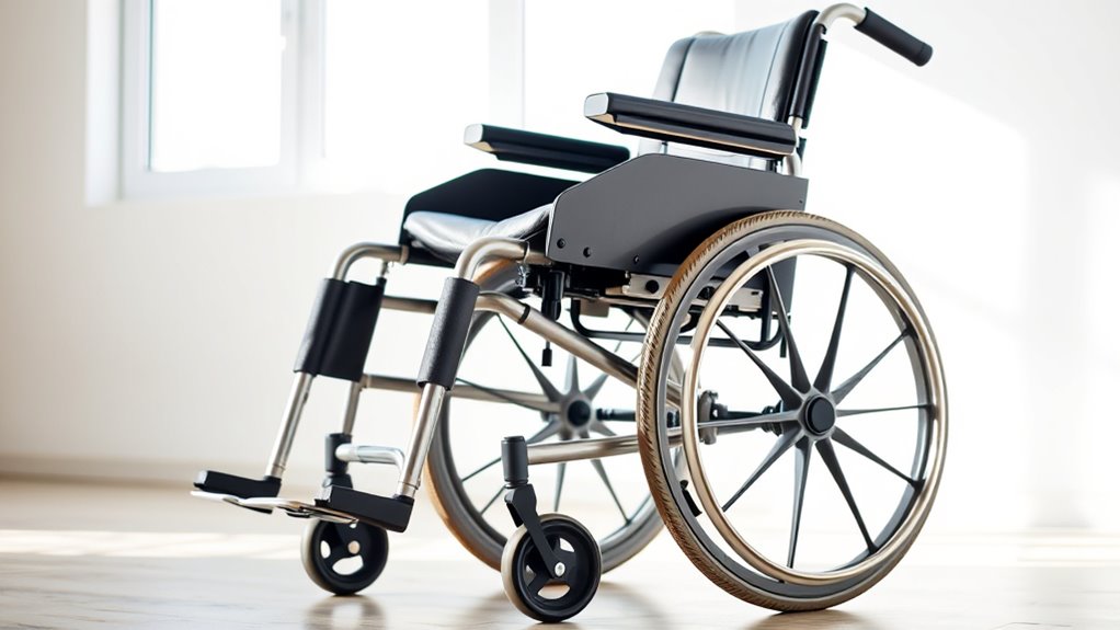 When choosing a wheelchair for seniors, portability and storage are key factors that can make daily life much easier. I recommend looking for models that are foldable and lightweight, making transportation and storage simple, especially for caregivers or seniors with limited strength. Compact designs with slim profiles, around 11-13 inches when folded, fit easily through standard doorways and into storage spaces. A built-in carrying handle or strap is a big plus for lifting and carrying during travel. Additionally, consider added storage options like side pockets or attachable bags for personal items, which add convenience. The frame material should be durable yet lightweight, such as aluminum or reinforced steel, ensuring the wheelchair is portable without compromising strength. These features considerably enhance ease of use and independence.