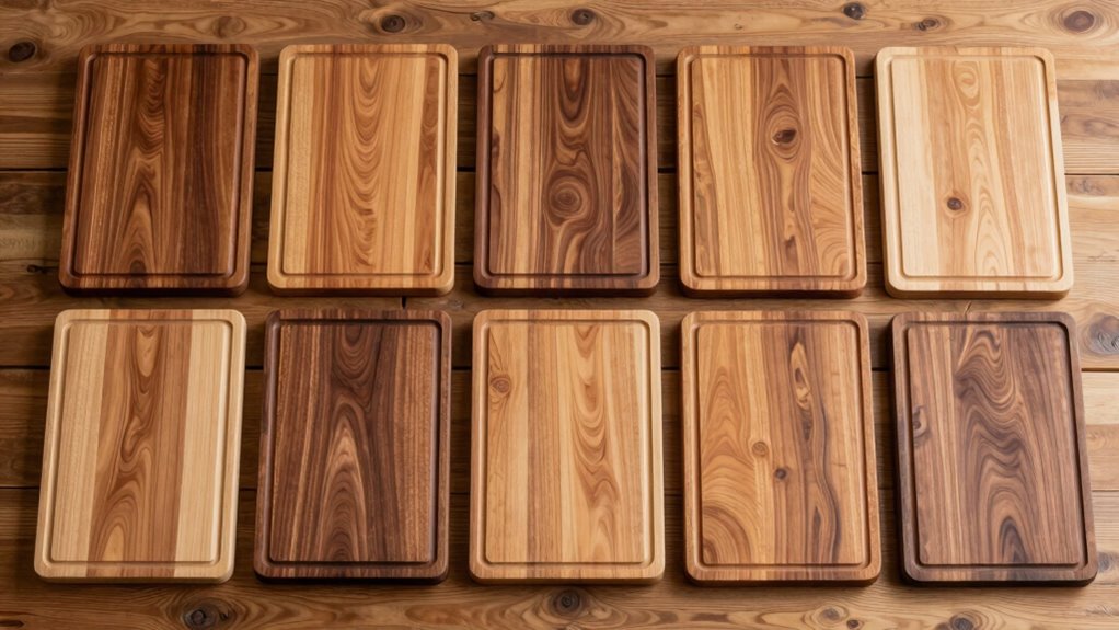Choosing a wooden cutting board that withstands regular knife use depends heavily on the wood’s hardness and density. Harder woods like maple, walnut, and acacia have higher Janka hardness ratings, making them more resistant to dents, gouges, and wear. These durable options help maintain a smooth surface and extend the board’s lifespan. Softer woods such as pine or cedar are more prone to scratches and cuts, which can trap bacteria and weaken the board over time. Additionally, the moisture content and treatment of the wood influence its resilience against cracking, warping, and bacterial absorption. Striking a balance in hardness ensures the board is gentle on your knives while remaining resistant to damage from frequent use, making it a practical and long-lasting choice.